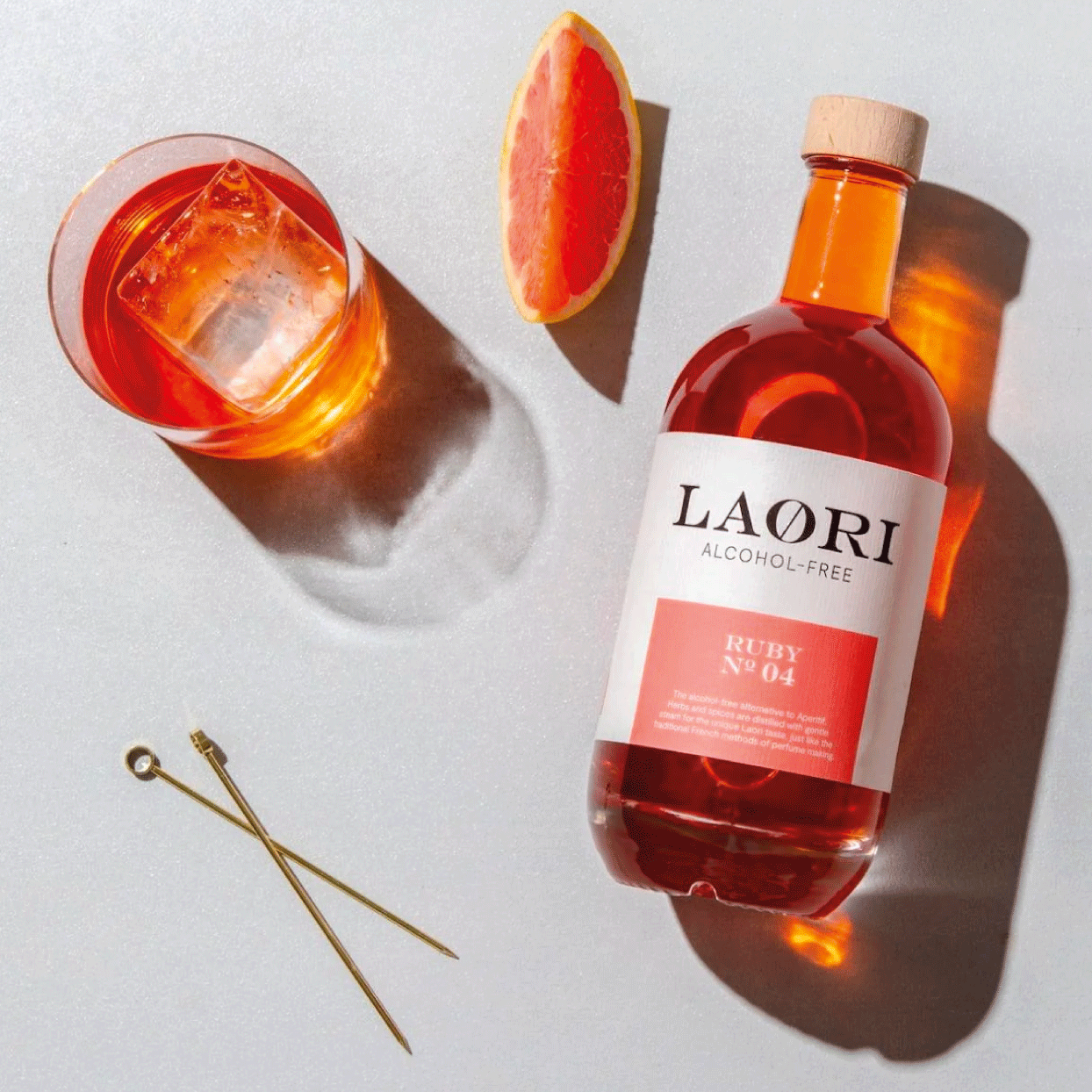 Laori presenta Ruby No 04, un aperitivo sin alcohol diseñado para aportar un chispeante toque veraniego a tus momentos. Sumérjase en el sabor natural y fresco elaborado con los mejores cítricos: pomelo Ruby rosado, naranja y limón siciliano.